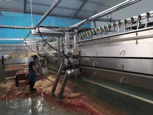 明順?biāo)固股仪萃涝琢魉€產(chǎn)品工藝介紹:1.?毛雞輸送1)卸車前應(yīng)索取產(chǎn)地動物防疫監(jiān)督機構(gòu)開具的合格證明,并臨車觀察,未見異常,證貨相符后準(zhǔn)予卸車。2)將裝有毛雞