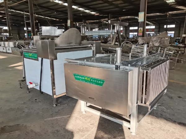 明順牌燙脫一體機是我廠自助研發(fā)的一款新型的家禽燙脫一體設(shè)備,本款設(shè)備可節(jié)省勞動力,燙毛脫毛自動完成。燙毛均勻,自動控溫,溫度可隨意設(shè)定,自動出料燙毛機自動翻入打毛機,打毛機打毛干凈快速。節(jié)約了時間從而完成燙脫良好結(jié)合,是一款適合用于中小型屠宰廠使用??蛇B續(xù)不間斷作業(yè)。每小時可處理家禽300-500只左右(可配套雞鴨鵝通用打毛機)
